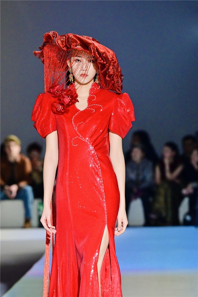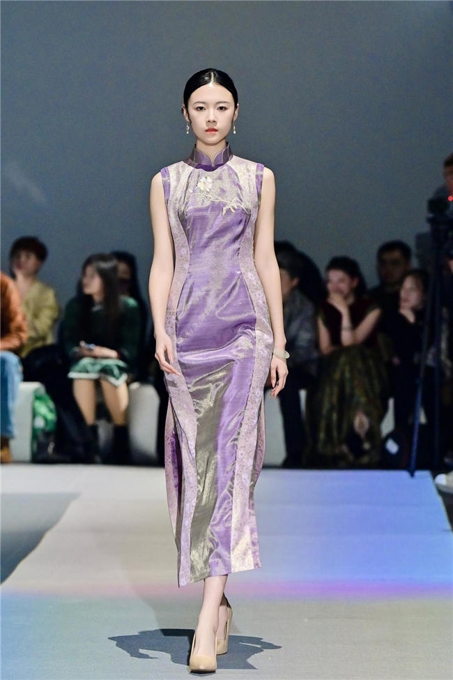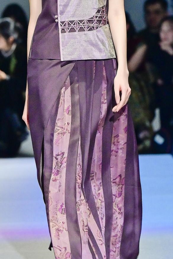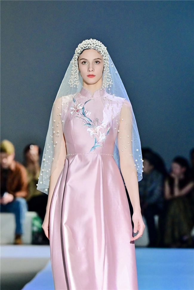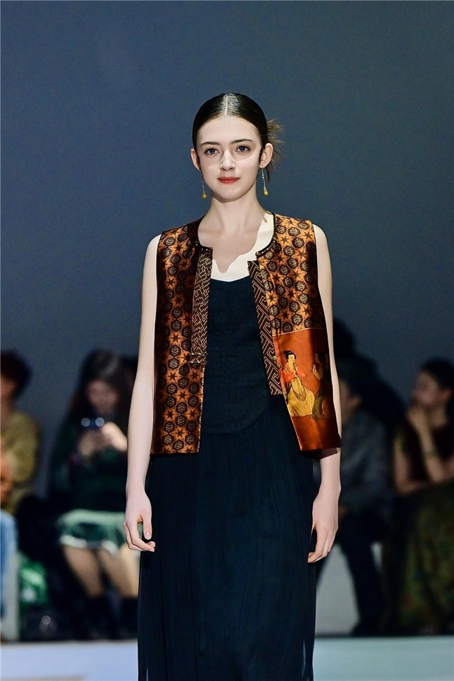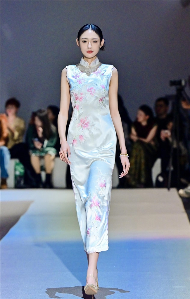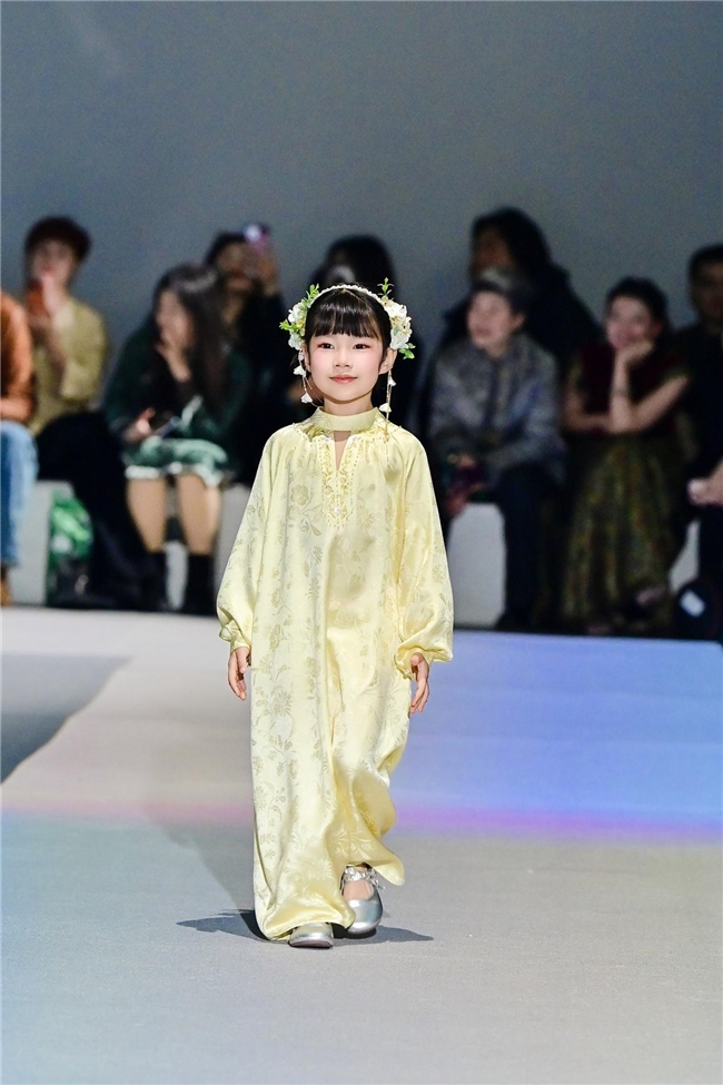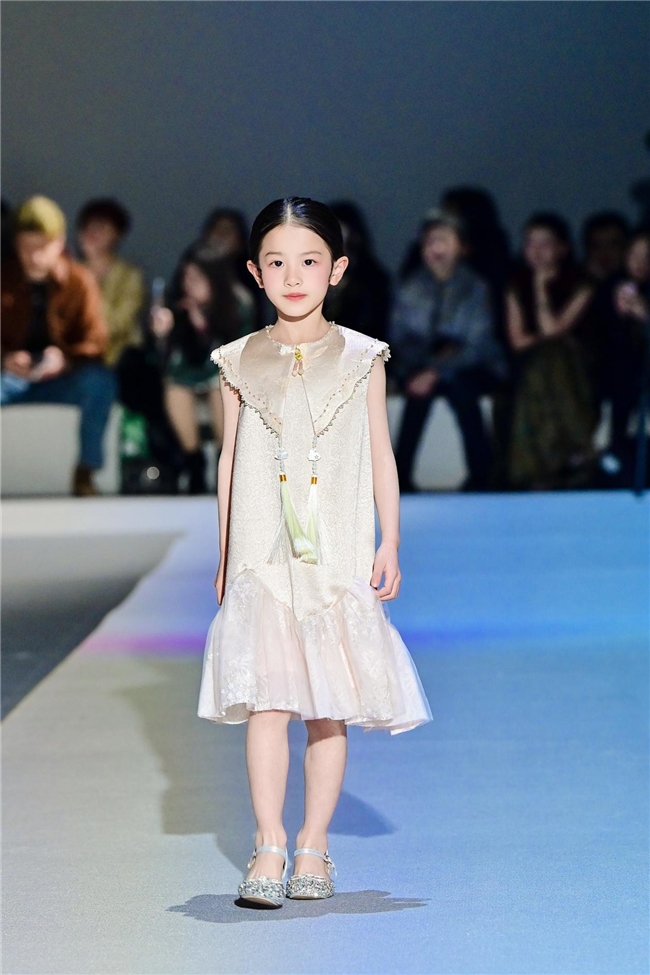 本场发布会主题“东风第一枝”,寓意春信初至、风尚先声,象征品牌在新一季中再度引领国风美学的焕新表达。本次大秀集中呈现了“非遗大师”、“职场女神”、“东方嫁衣”等多个经典系列,“青云出岫”、“庄周梦蝶”、“霓裳羽衣”等凝练诗意的文化元素,被巧妙融入本季设计之中,以服装这一载体,意象化地演绎当代人心中轻灵雅致的非遗新中式美学,深刻阐述“诗意”与“传承”的融合力量。
