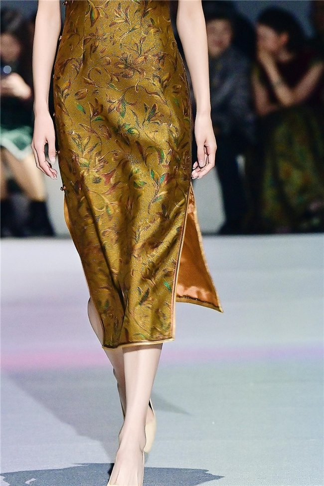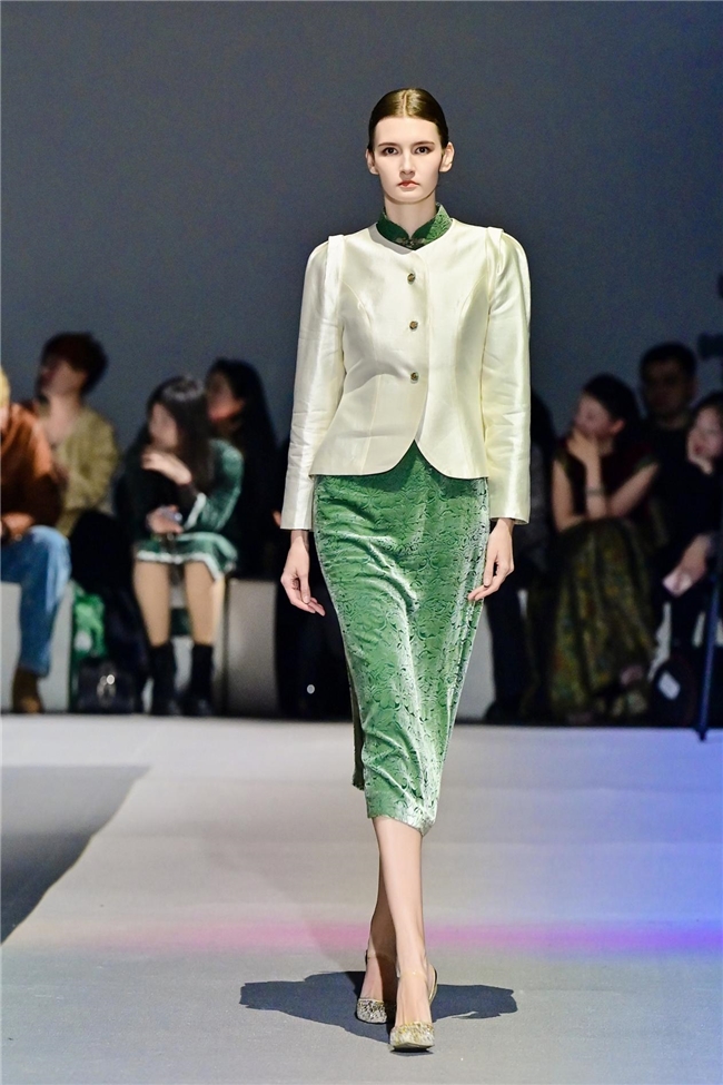 整场发布以“地载厚物”、“渐染春息”、“满庭芳华”三大主题篇章徐徐展开,从挺括厚重的新中式大衣、外套,到层次丰富的新中式旗袍、礼服,再到飘逸轻盈的新中式连衣裙,深入探索新一季服饰如何以当代设计重构实穿的国风诗意。